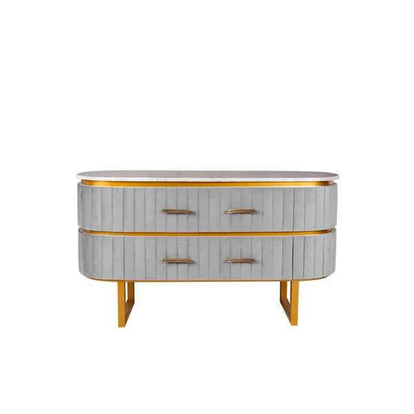 With a ribbed finish and fine marble top, the Brizo dresser with hints of gold is tastefully crafted for the perfectionists.